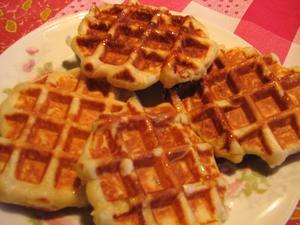 - Faire chauffer le gaufrier, déposer avec une cuillère une grosse boule de pâte dans le gaufrier, et laisser cuire environ 3 à 4 minutes.