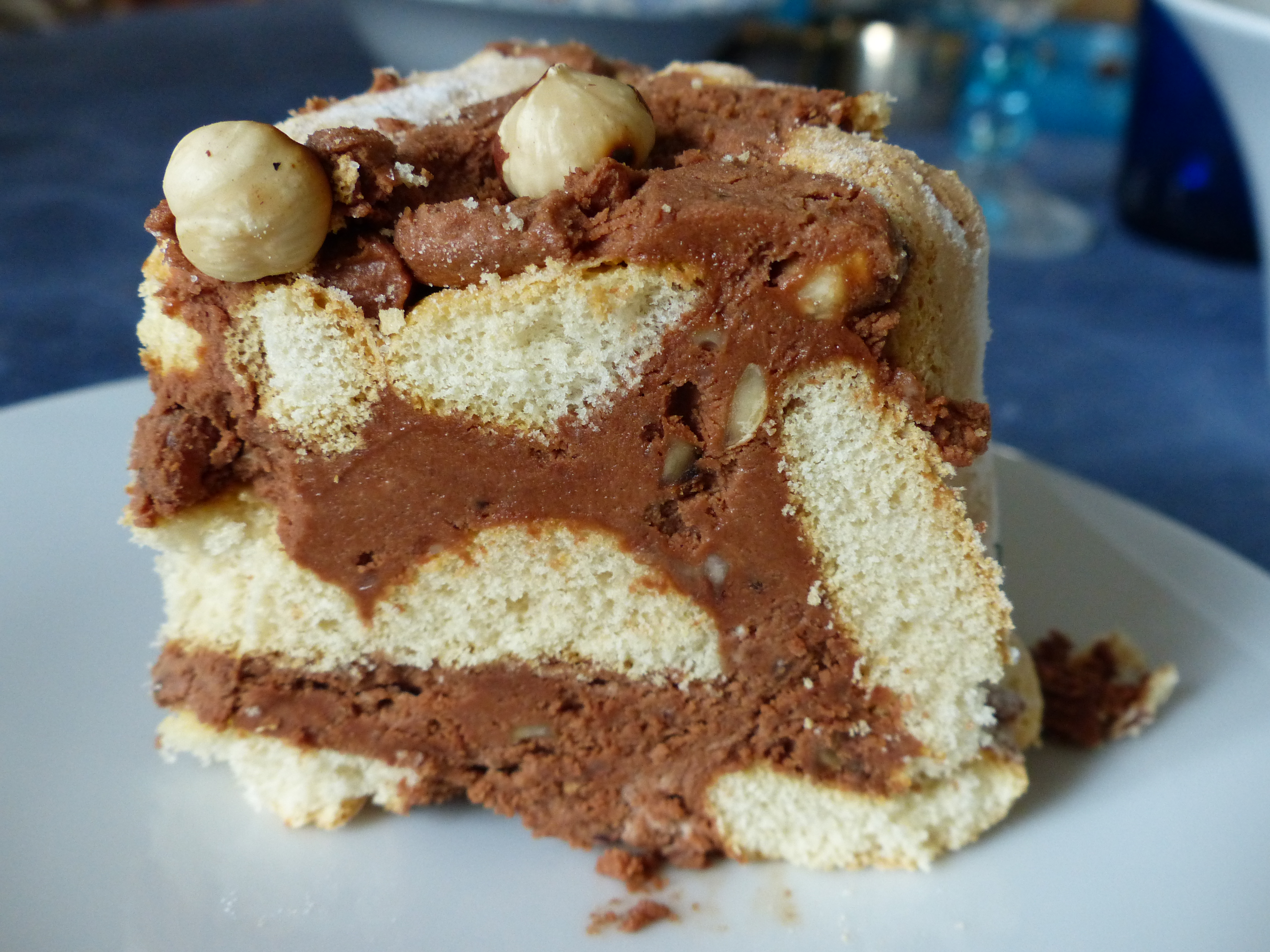 - Servir en retournant la charlotte sur un plat de service et décorer avec les noisettes restantes.