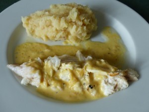 • Ici servie avec une purée de céleri et pommes de terre.