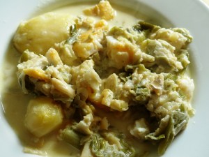 - Couper les filets de haddock sans peau en lanières, les ajouter et faire chauffer le tout pendant 5 minutes.