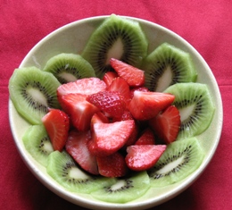 - Laver les fraises, les équeuter et couper les en 2 si elles sont trop grosses dans un saladier.