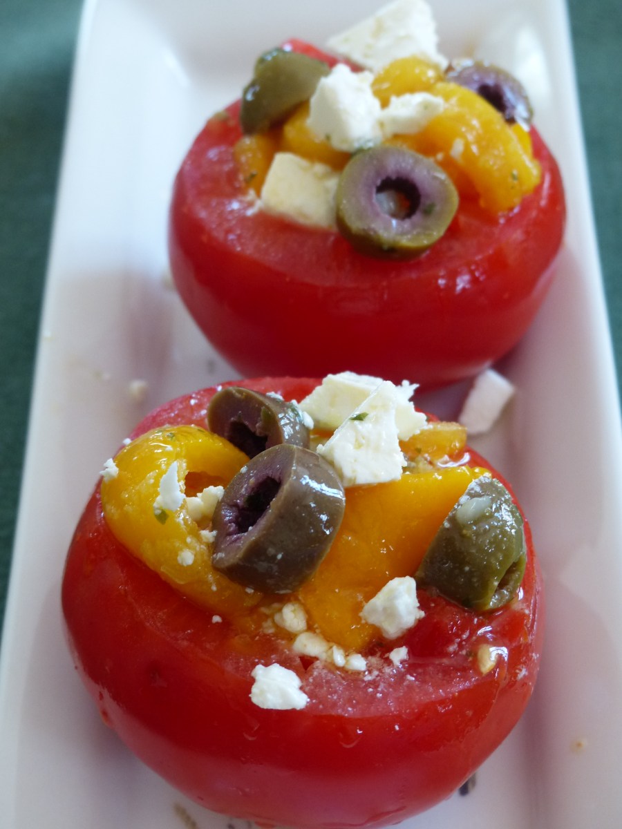 Il me restait des poivrons marinés, j’ai donc préparé ces tomates farcies.