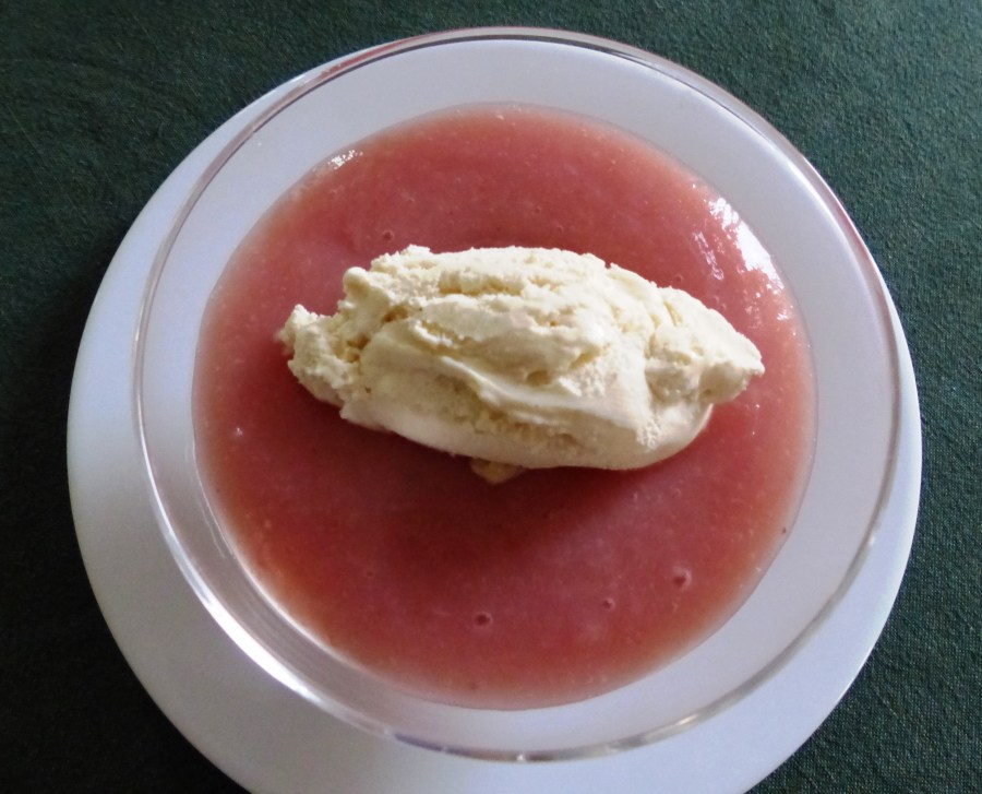 - Verser dans des coupes et poser dessus une quenelle de glace vanille.