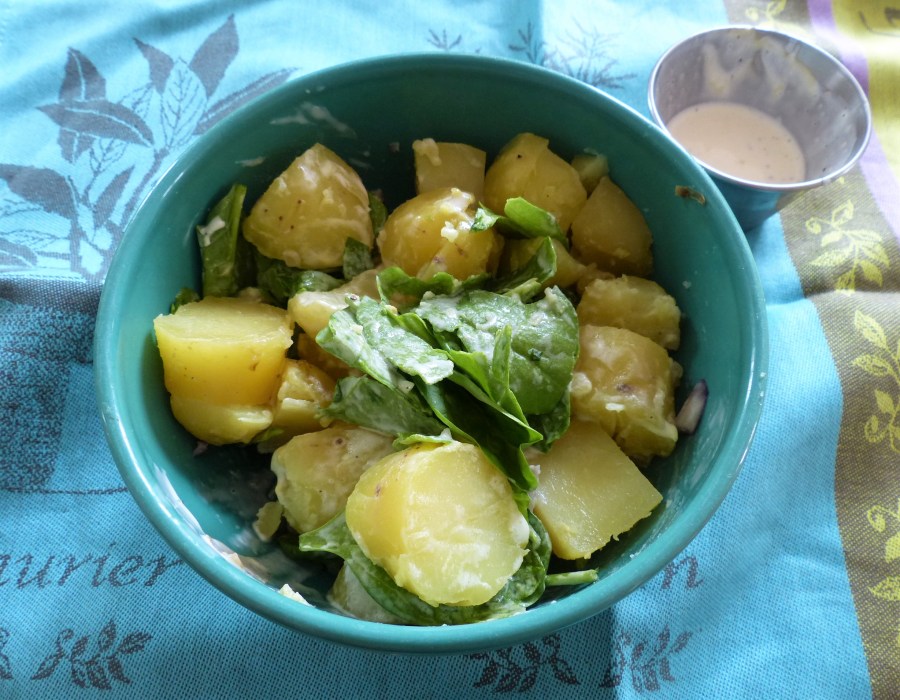 Une petite salade de pommes de terre nouvelles tièdes et jeunes pousses d’épinards…..