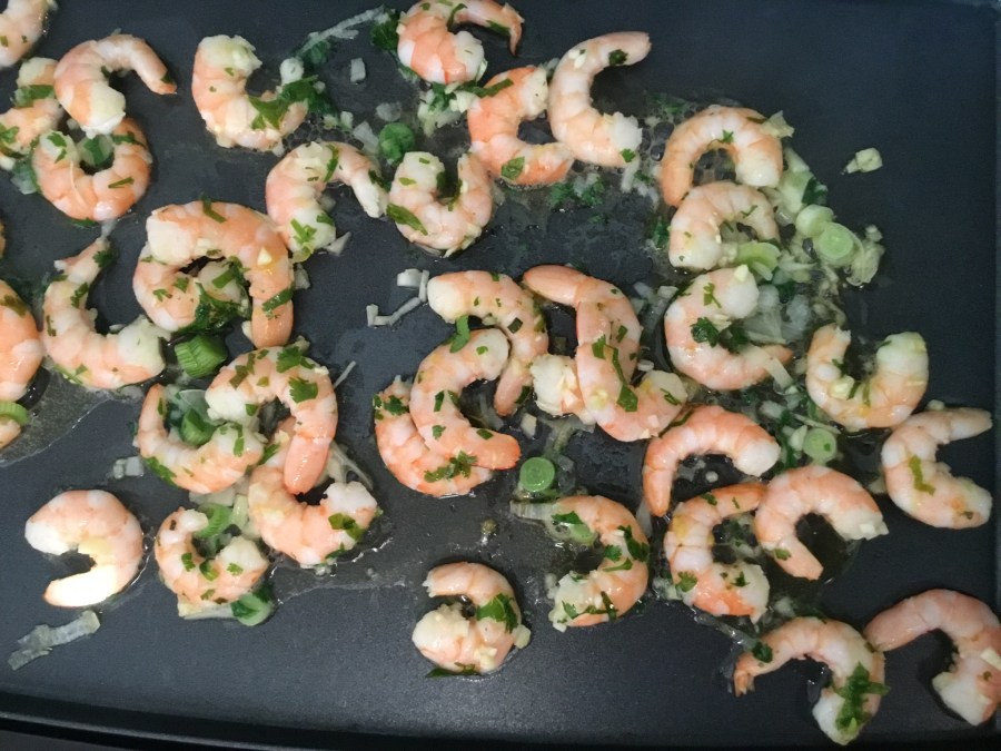 - Faire chauffer la plancha et faire cuire les crevettes sur les 2 faces quelques minutes.