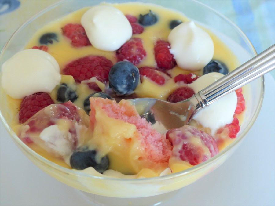 So british… mais revu à ma façon : biscuits roses de Reims, pas de confiture pour un dessert moins sucré…