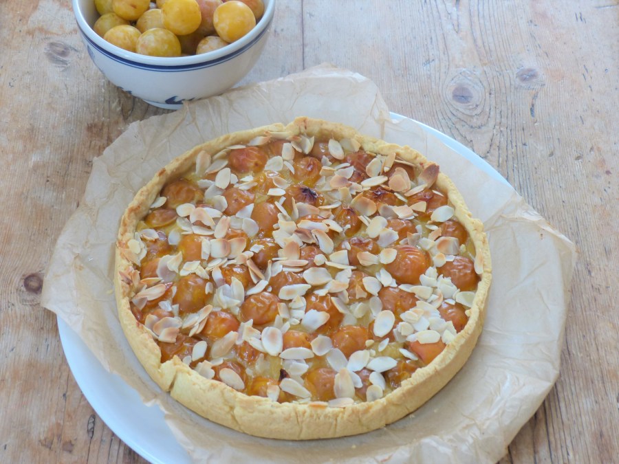 Les mirabelles de Lorraine sont sur les étals de marché, j’ai préparé une tarte flan mais en utilisant du lait d’amandes car amandes et mirabelles se marient bien….le résultat est très bon.