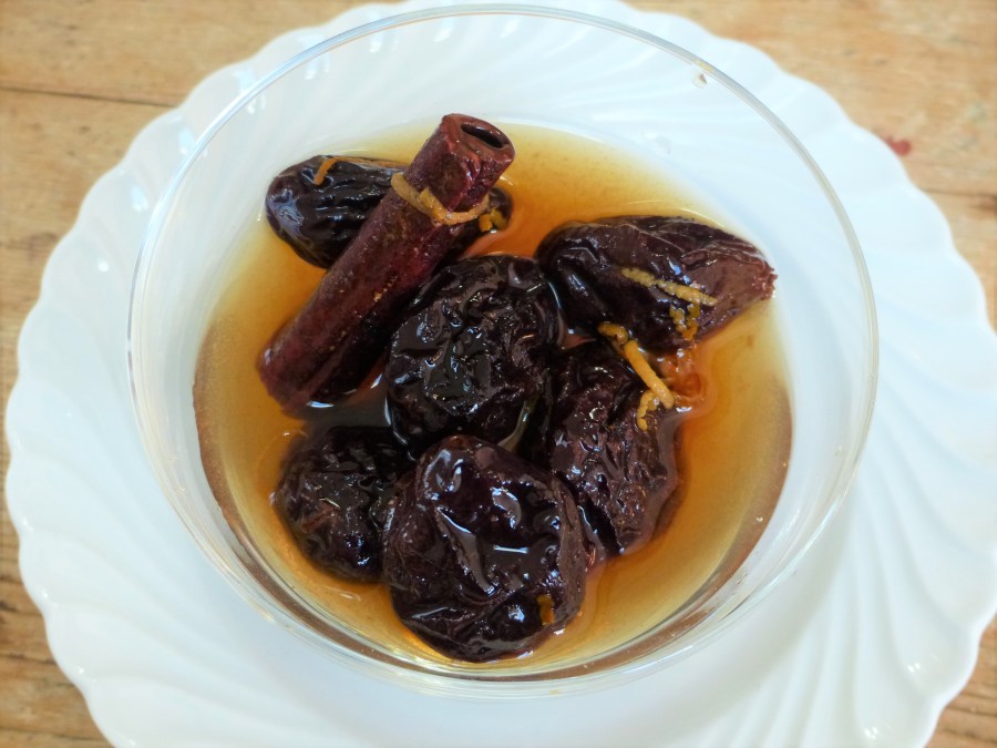 - Verser dans un saladier avec les épices, les zestes des fruits, les pruneaux et laisser mariner pendant 24 heures minimum pour laisser les pruneaux gonfler et s’imprégner des épices.