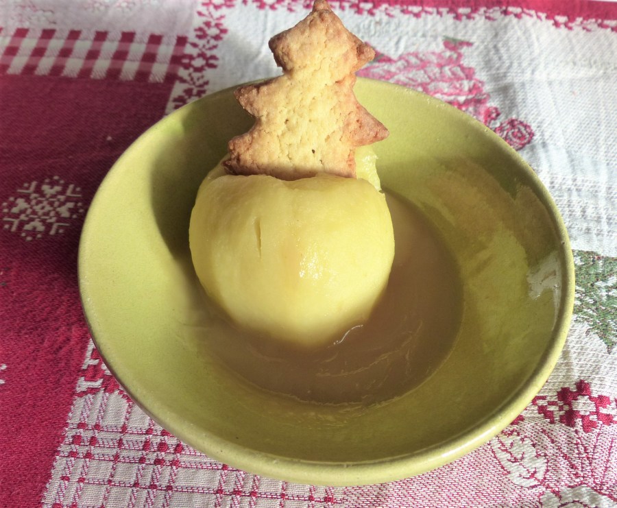 - Disposer les pommes sur un lit de gelée et accompagner d’un petit sablé.