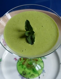 - Ajouter quelques feuilles de menthe et mixer, ( ajouter les feuilles de menthe au fur et à mesure et goûter car le goût de la menthe doit être léger).