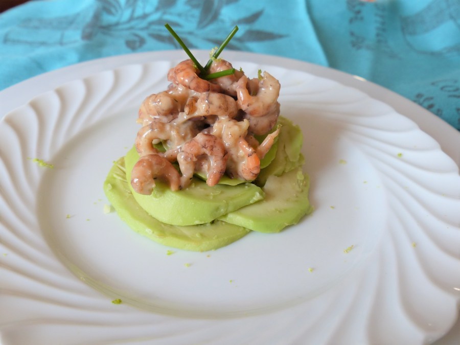 - Couper les avocats en lamelles, les disposer sur assiette en créant une fleur.