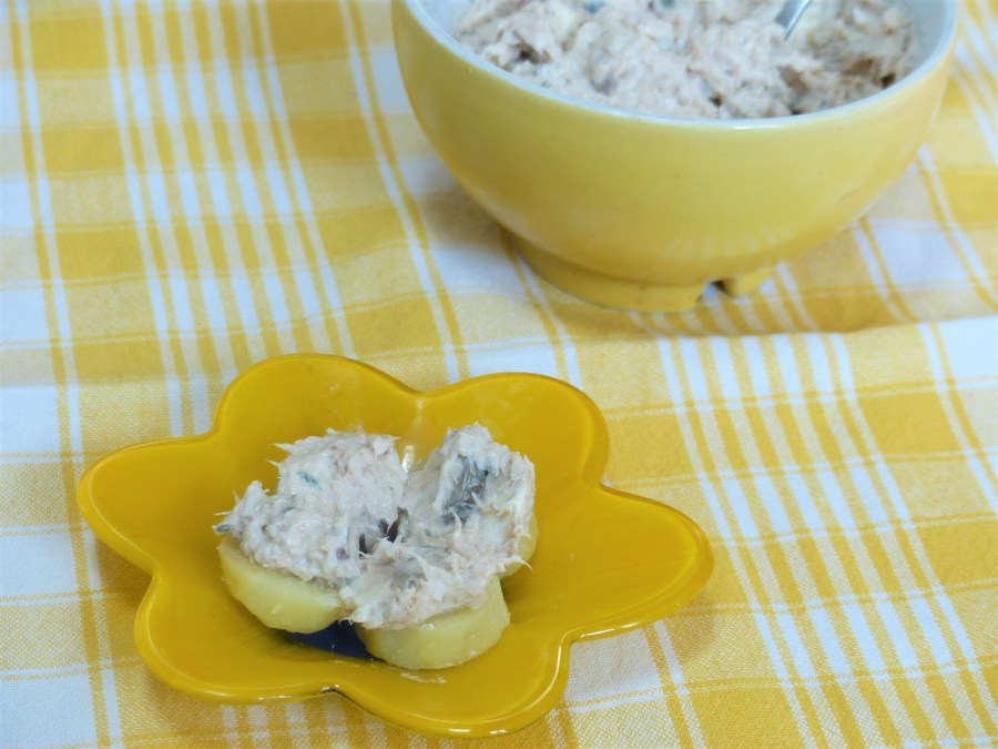 Une recette vite faite servie sur des rondelles de pommes de terre, cela change des tartines ……