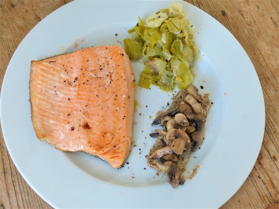 - Poser sur chaque assiette un pavé de truite, et accompagner de fondue de poireaux