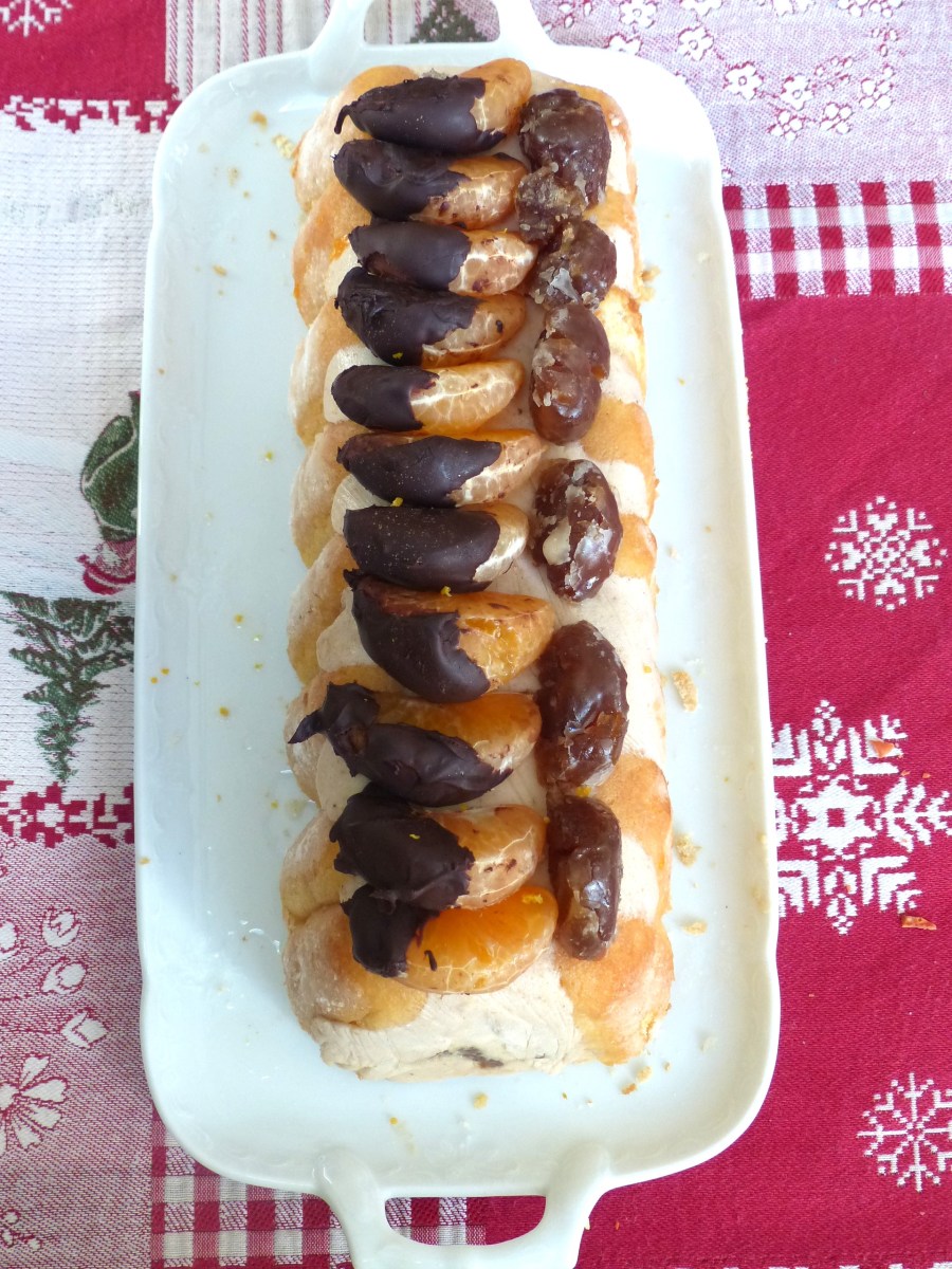 Une bûche toute légère pour terminer un repas……facile à faire et sans cuisson, et délicieuse….. Elle peut se préparer plusieurs jours à l’avance et se garder au congélateur. Pour la rendre encore plus gourmande, accompagner la bûche d’une sauce chocolat parfumée aux zestes de clémentines……