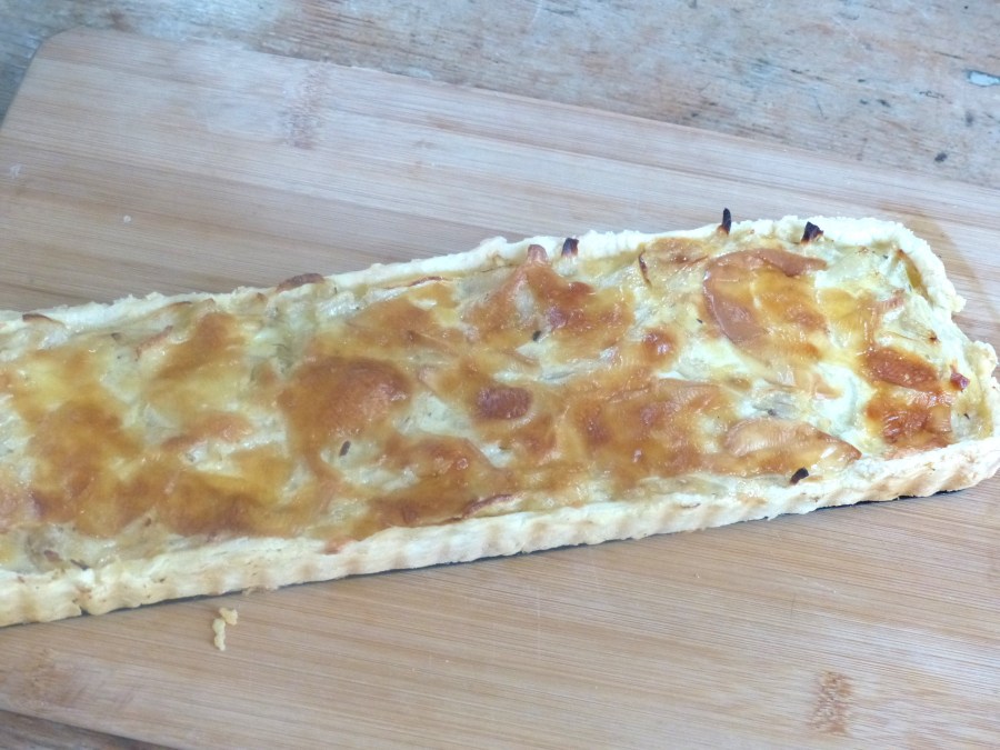 - Couper le fromage en lamelles fines et recouvri toute la tarte avec.