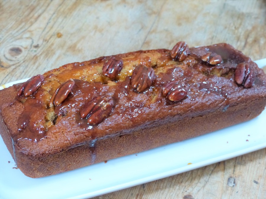 - Beurrer et fariner un moule à cake, verser la pâte.