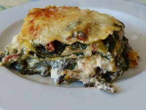 - Passer sous l’eau tiède une à une les feuilles de lasagnes ( oui je les mouille avant de les utiliser pour qu’elles soient bien moelleuses à la cuisson) et les disposer au fond du plat.