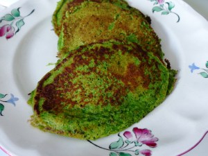 - Mélanger les oeufs avec l’huile d’olive, ajouter la farine, les feuilles de chou kale hachées, les graines de lin et le sachet de levure chimique.