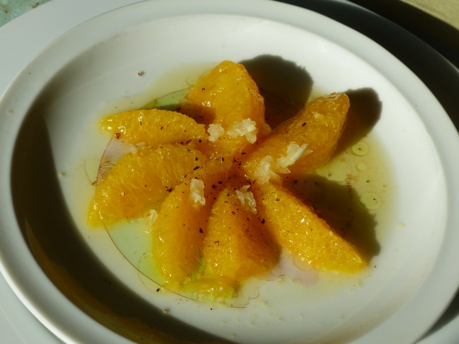 Oui, une salade d’oranges en entrée. Originale et très bon, l’orange se marie très bien à l’huile d’olive, choisir une huile d’olive délicate de Provence, l’huile d’olive goût subtil de chez « huiles-et-olives »