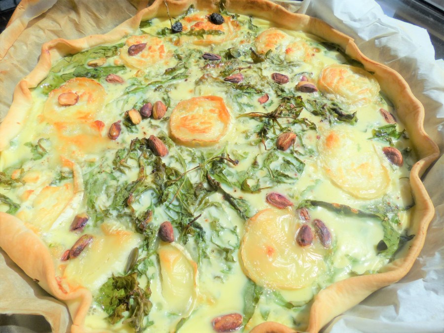 - Couper le fromage de chèvre en rondelles et les disposer sur la quiche.